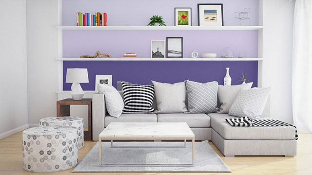 Màu Violet Sequin (72C-4D) kết hợp thêm màu Winsome Lilac (72A-3P) khiến không gian phòng ấm cúng, gần gũi và mang đến sức sống tràn trề năng lượng cho bạn mỗi ngày